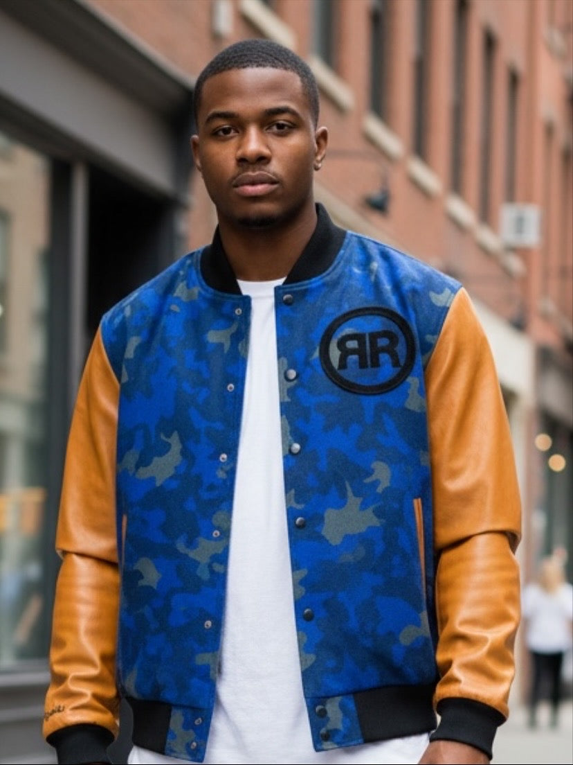 Camouflage Blue/Peanut Varsity Jacket