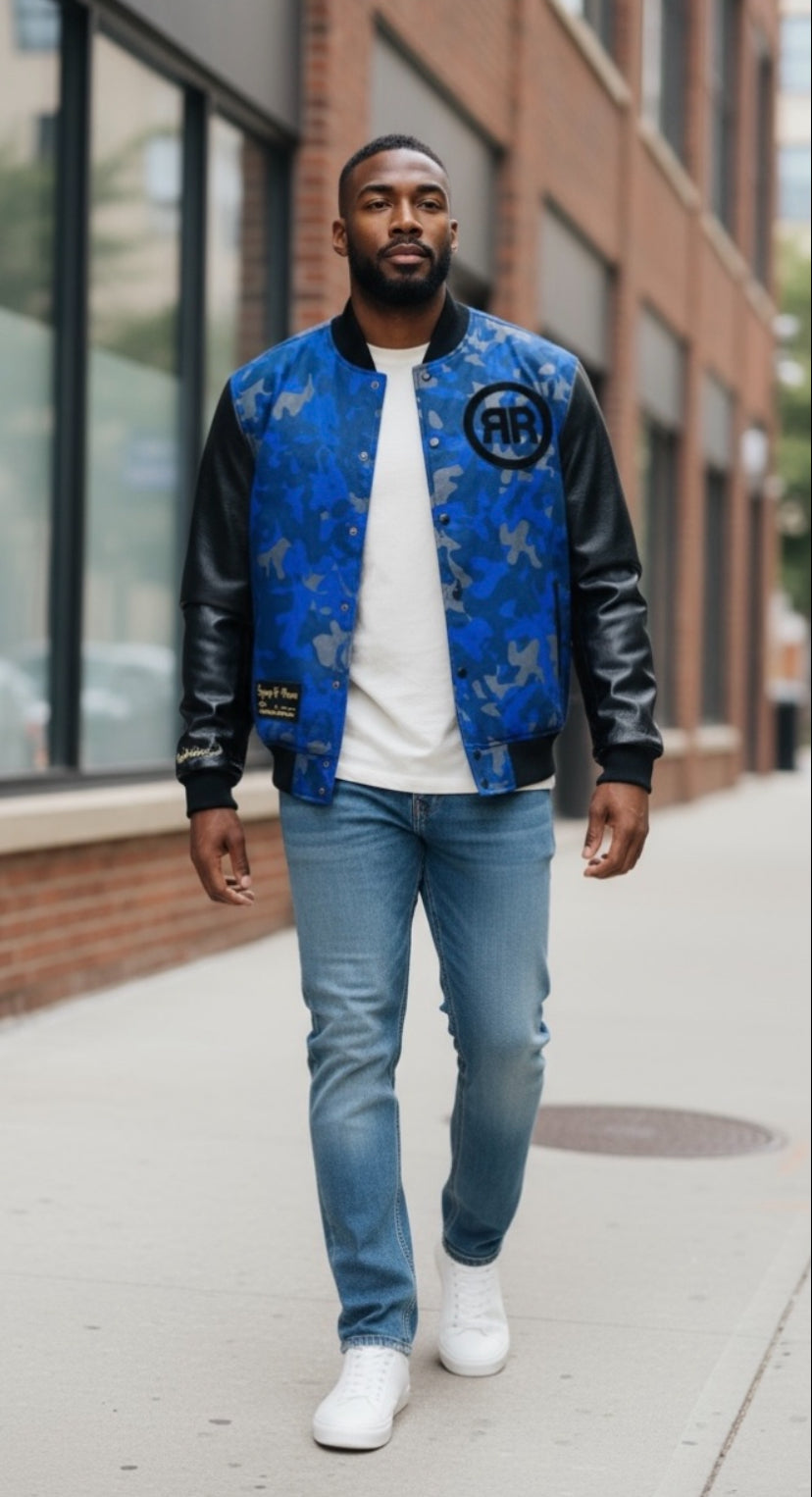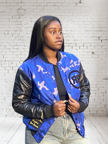 Blue and Black Camouflage Varsity Jacket