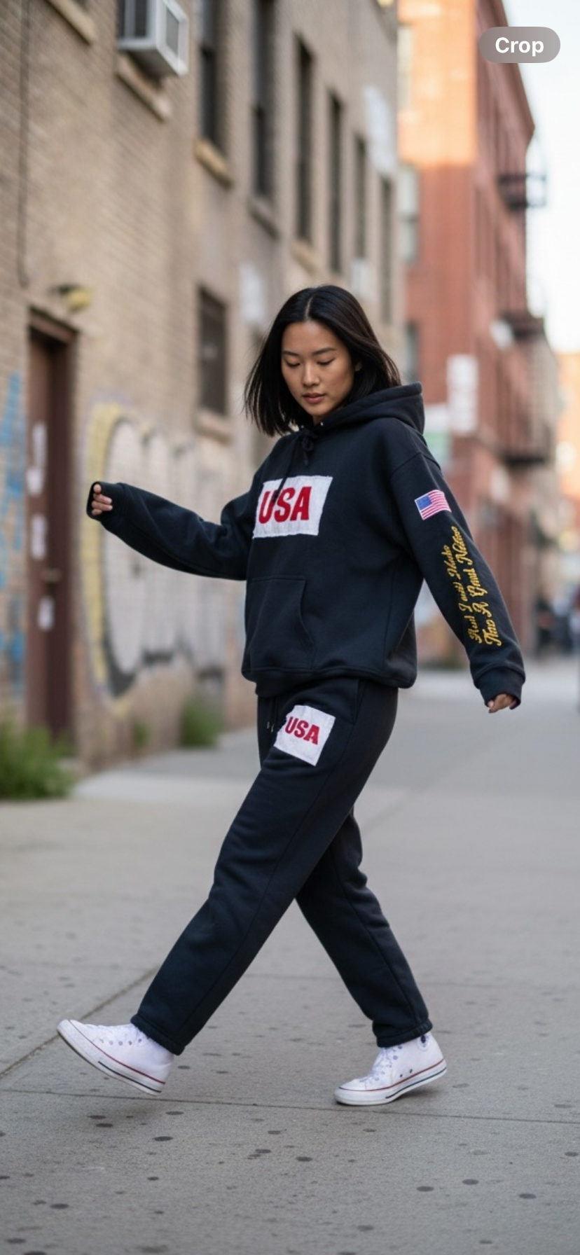 USA HOODIE SWEATSUIT PREMIUM FRENCH TERRY COTTON. BLACK.