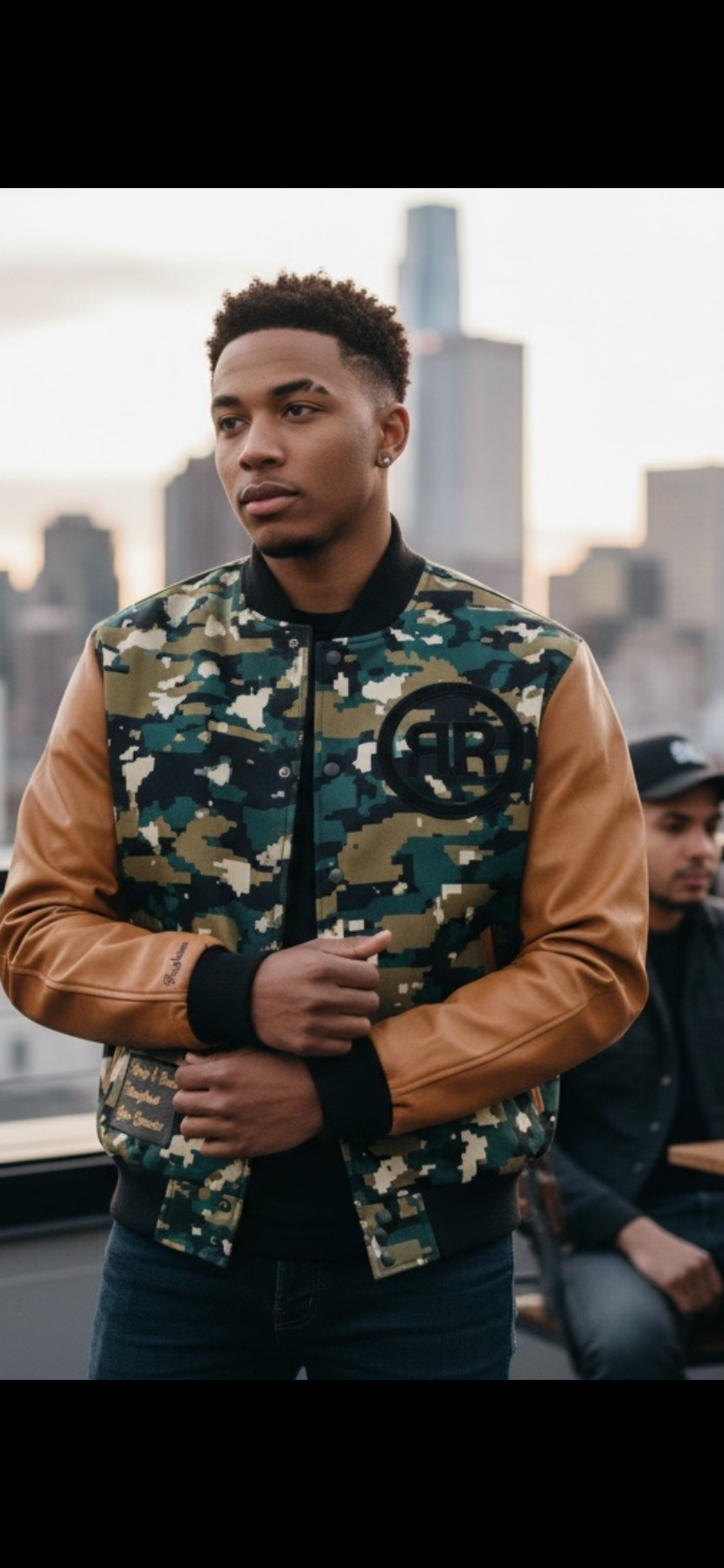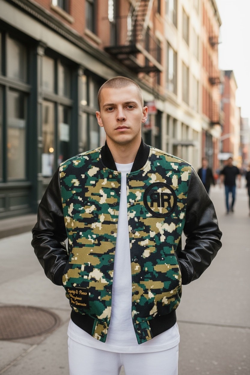 Camouflage/ Black Varsity Jacket