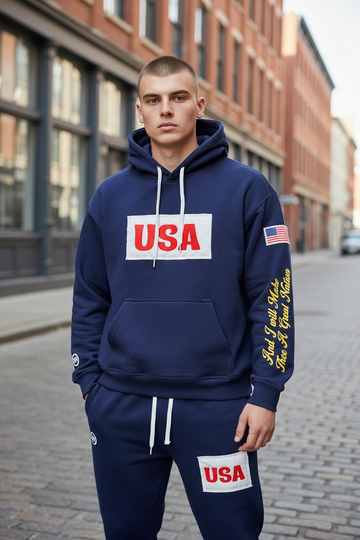 USA HOODIE SWEATSUIT PREMIUM FRENCH TERRY COTTON. NAVY BLUE