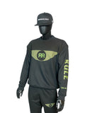 French Terry Cotton, drop shoulder oversized baggy fit. Quilted Stitched pattern upper chest. Large Distressed Green Embroidered Wing Logo across front of shirt. green screen-printed sleeve logos, left wrist small logo embroidery.
